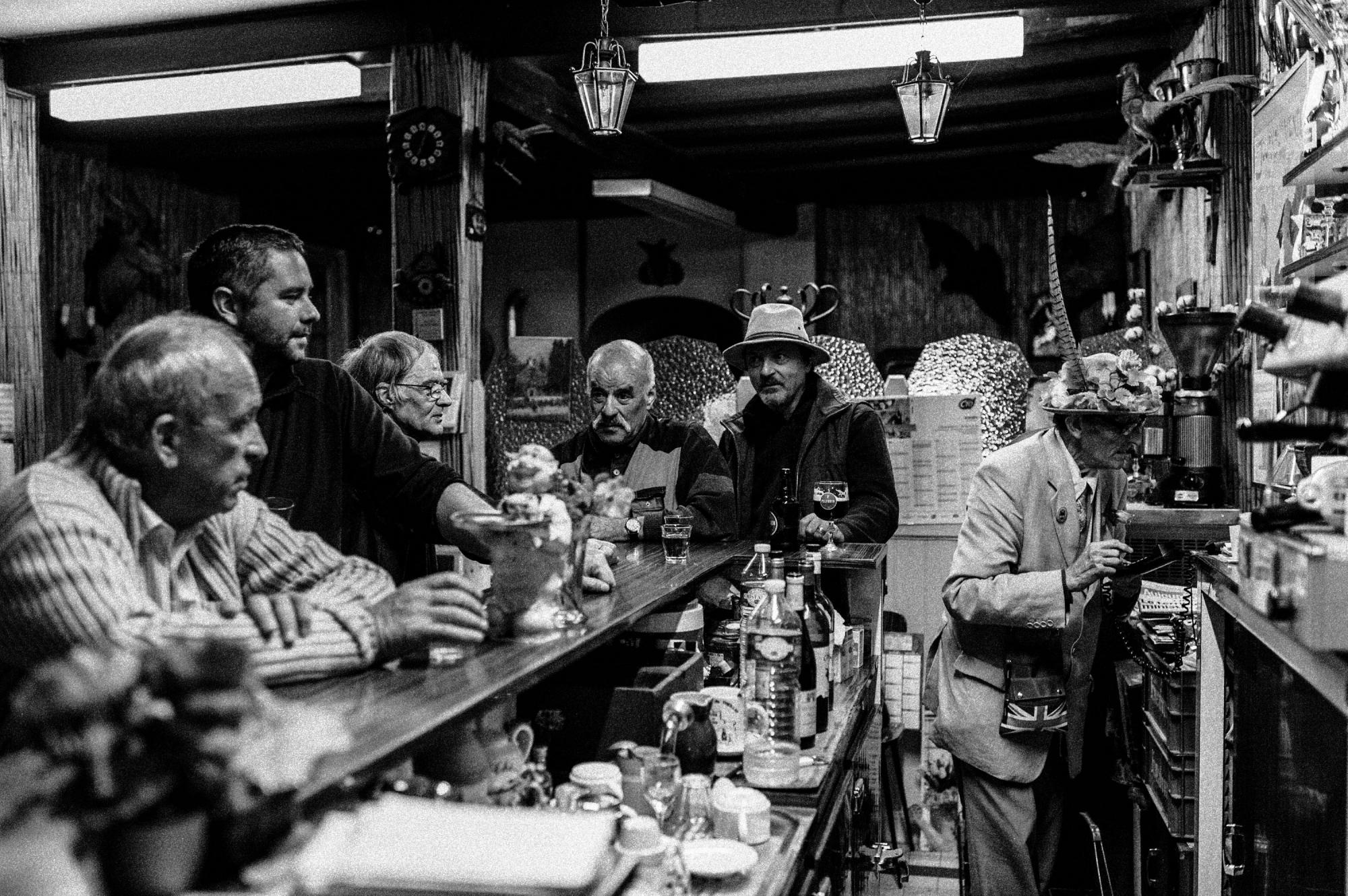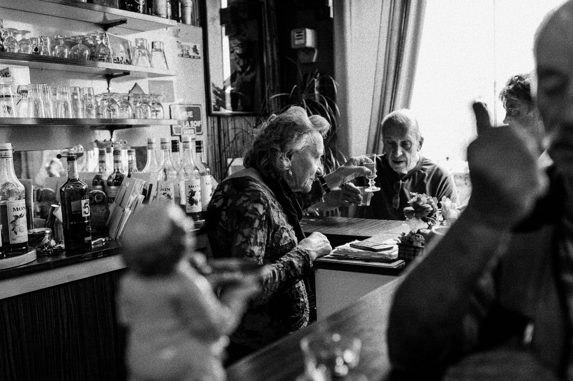 Chez Madame Jeanine, comme nous l’appelions affectueusement, les habitués du quartier côtoyaient les amateurs d’art quand le Caveau servait de lieu d’exposition. Les clients du marché Saint-Bonnet venaient le dimanche matin y boire l’apéritif, un verre de blanc sans faux col ou une Suze, tout en écoutant Aznanour ou Piaf, dont les voix sortaient du juke-box collector toujours opérationnel. Des âmes seules traînaient parfois tardivement leur spleen devant le comptoir et leur jaune…
