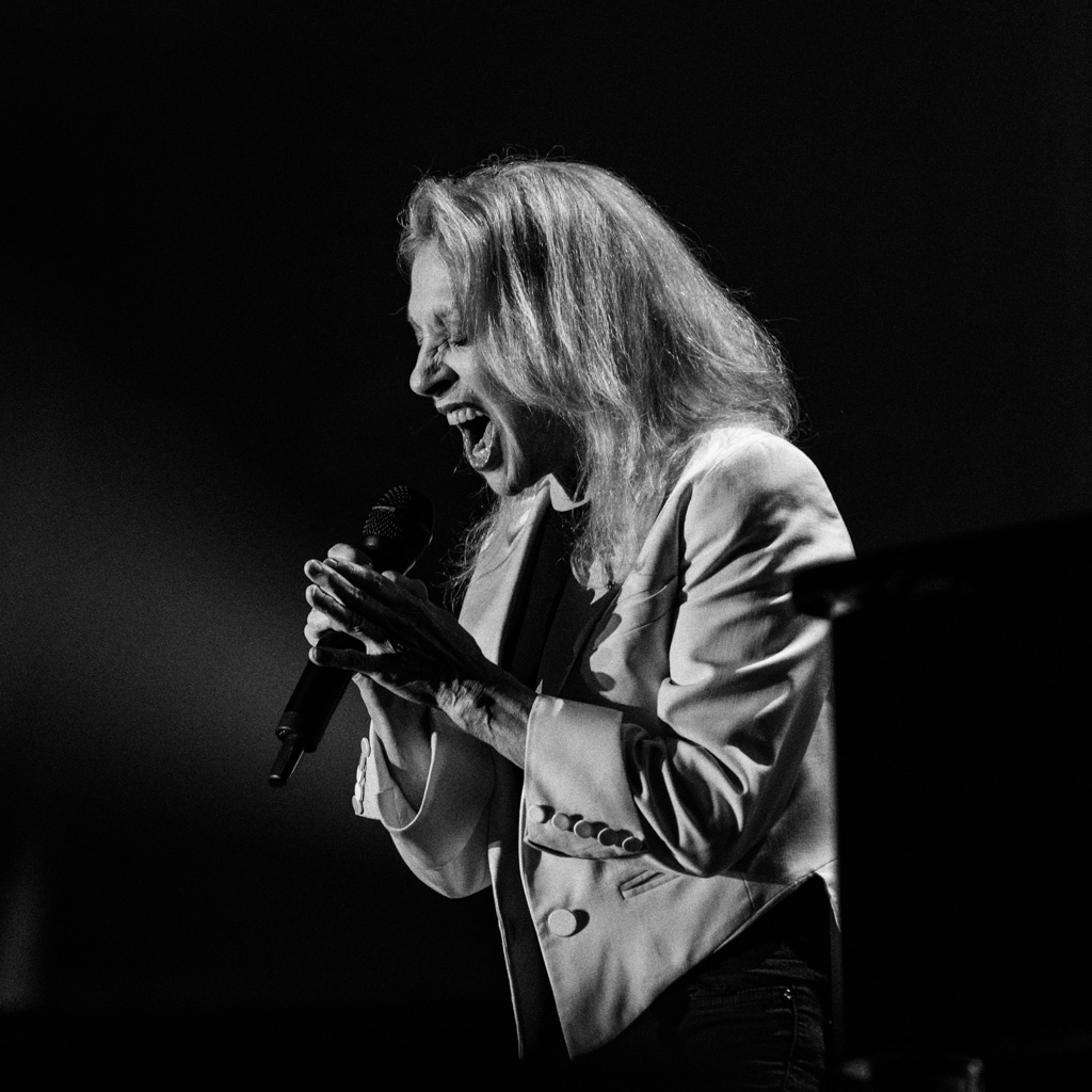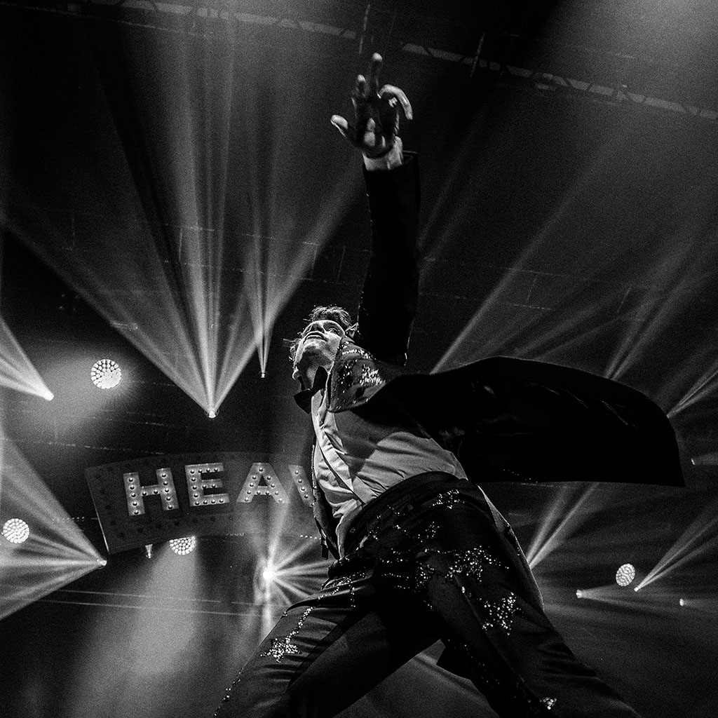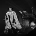 Dans l’ascenseur silencieux. Après la bataille, avant la bataille. Ca fait longtemps qu’on se prépare, qu’on s’affûte, qu’on fantasme : on va pénétrer dans la chambre de rêve et on va faire l’amour avec le public ! Les toréadors et toréadoresses s’apprêtent à rentrer dans l’arène, éblouis par les lumières artificielles, dans la confusion sonore des applaudissements, prêts à dompter la vague imprévisible. Mais pour l’instant ascenseur. Mines plutôt graves car concentrées, vides, disponibles. Dans un coin un homme avec un appareil photo : Gianni Villa. Sympathique animal de proie aux aguets, son temps est limité, il doit saisir l’instant. Le groom au costume rouge vif et aux boutons d’or demande : quel étage ? Troisième sous sol, seizième étage, peut importe petit, emmène nous devant les portes du paradis, c’est tout ce qu’on demande ! Le groom acquiesce et s’exécute. Soudain Gianni, qui s’était fait oublier, dégaine, il saisit l’instant, capture une petite partie de l’âme de l’artiste, gestes simples, efficaces, rapides. La mémoire du moment est enregistrée dans l’éternité de la dimension photographique. The ceremony is about to begin. La beauté du rêve dans l’échange va commencer. Gianni en coulisse se glisse sur un coté de la scène. L’être un peu coincé de l’ascenseur s’est transformé en étoile chantante ou quelque chose comme ça.